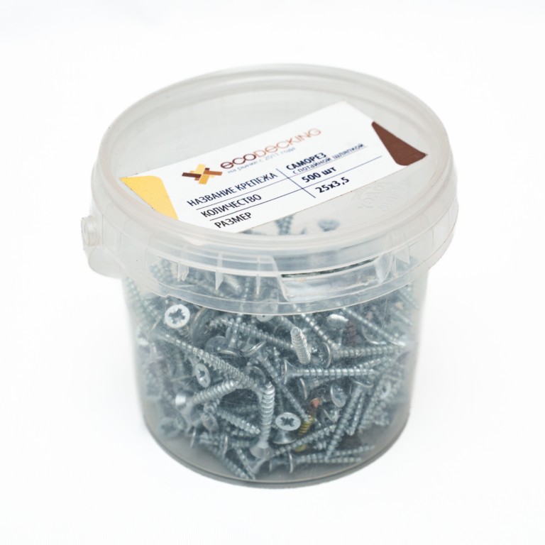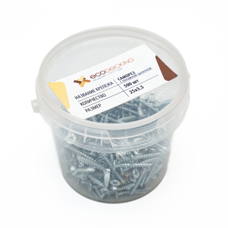 Саморез по металлу Экодекинг 3,5х25 это саморез предназначенный для монтажа клипс для террасной доски на подкладку из металла. Изготавливается из оцинкованной стали. Обеспечивает прочное и долговечное крепление элементов.